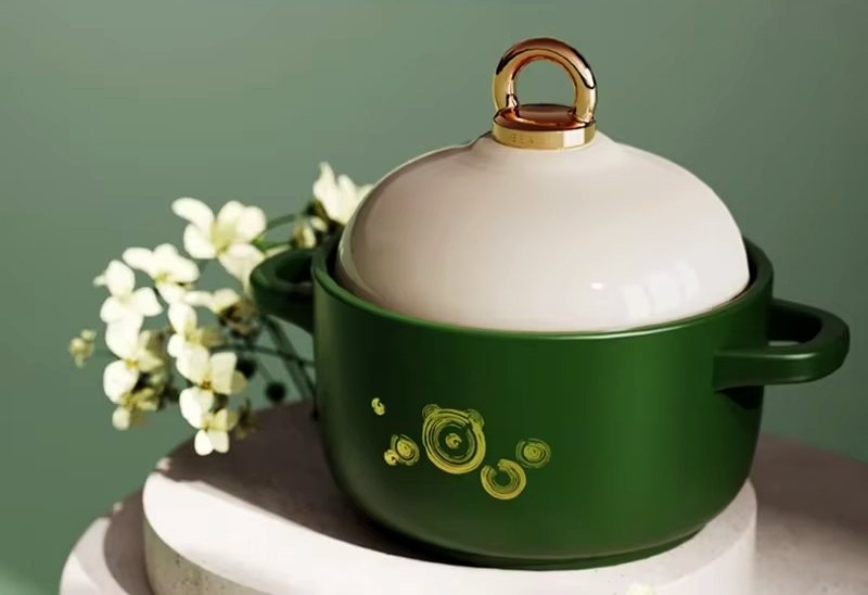 The rustic charm of ceramic pots adds beauty to your kitchen and dining table. They come in various colors and designs, making them a stylish choice for both cooking and serving.