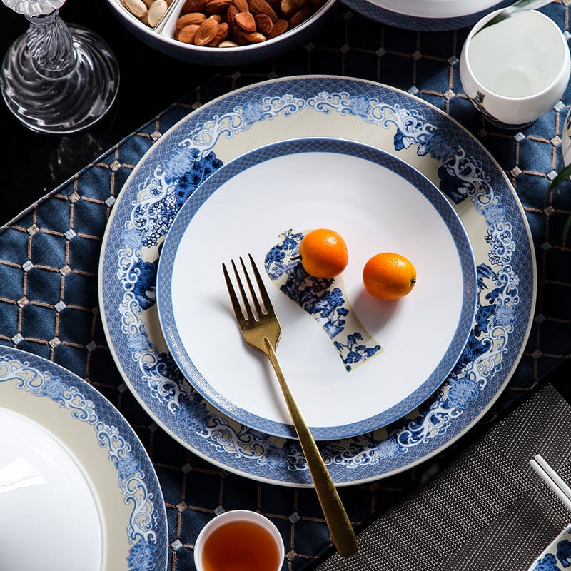 The Wholesale Bone China Dinnerware in Flourishing Blue and White is available in different set sizes ranging from a basic 16-piece set to larger sets that include up to 48 pieces. This makes it suitable for different occasions and budgets. Additionally, the elegant and timeless design of the dinnerware set makes it perfect for both casual and formal occasions.