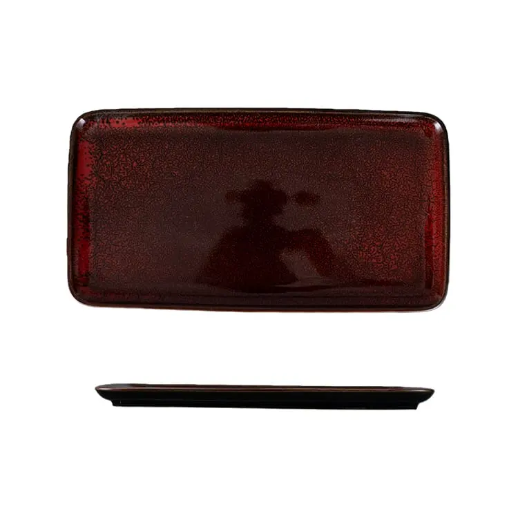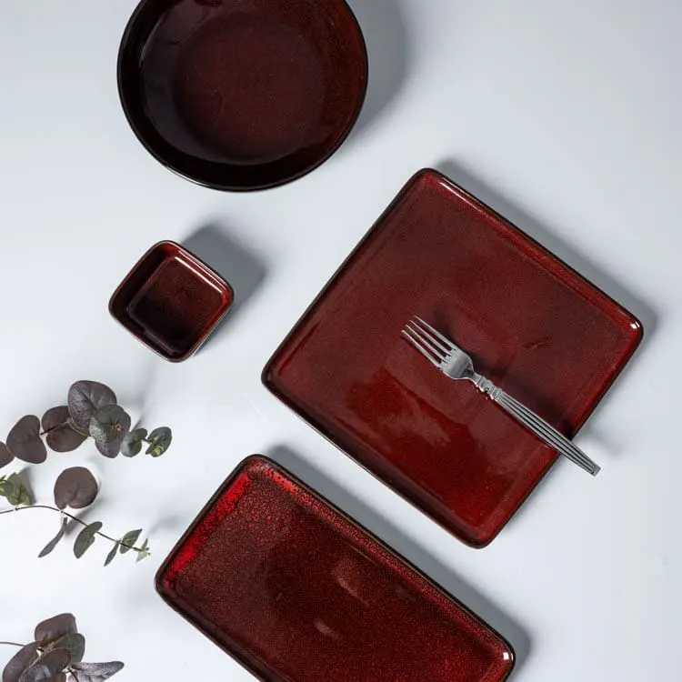 Platos cuadrados rectangulares esmaltados en rojo