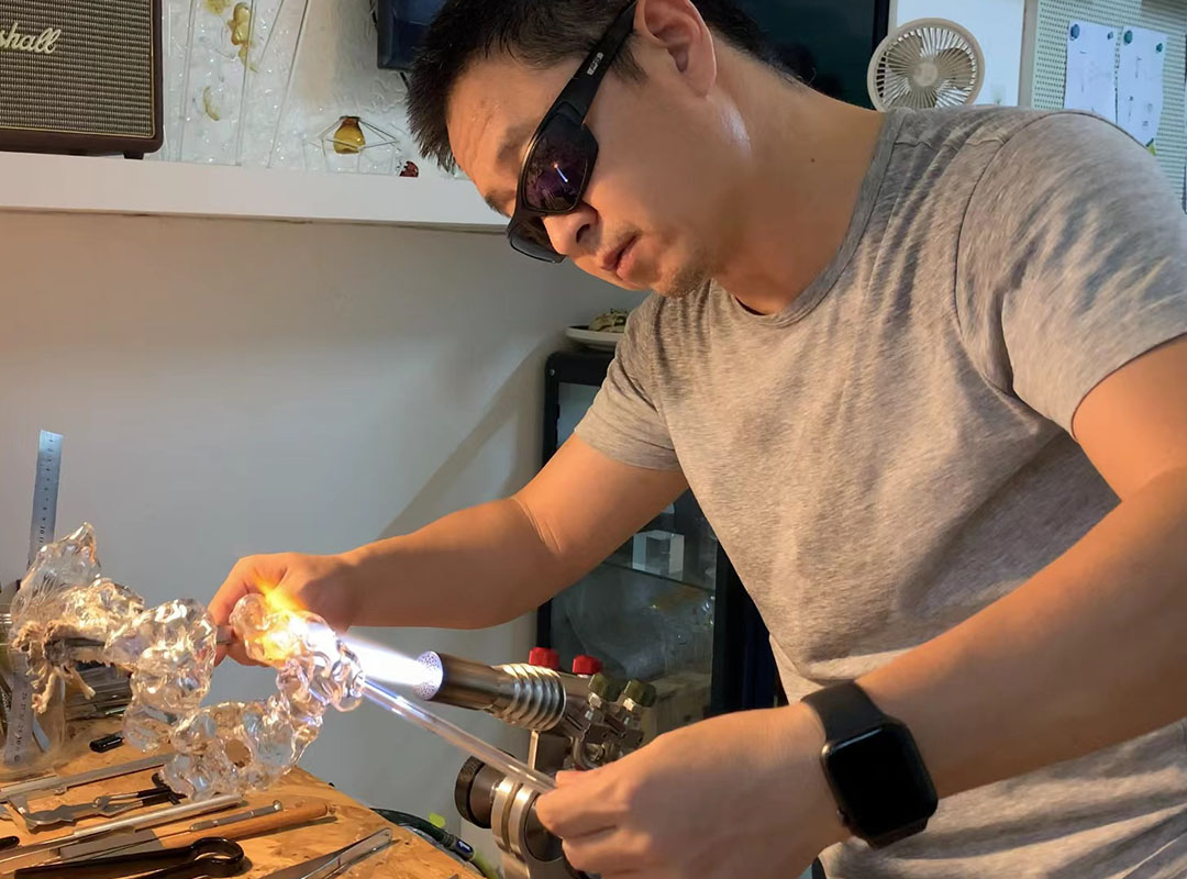 From the architectural design institute to the establishment of its own design company, and then met with glass, and founded the blooming art glass studio so far. Proficient in all kinds of glass art production techniques, love to study glass production and innovation, committed to creation and teaching, spread glass art, and empower Chinese glass art production.