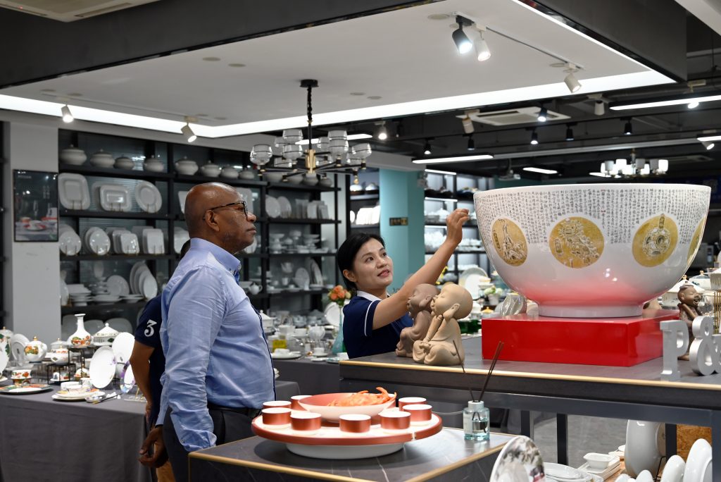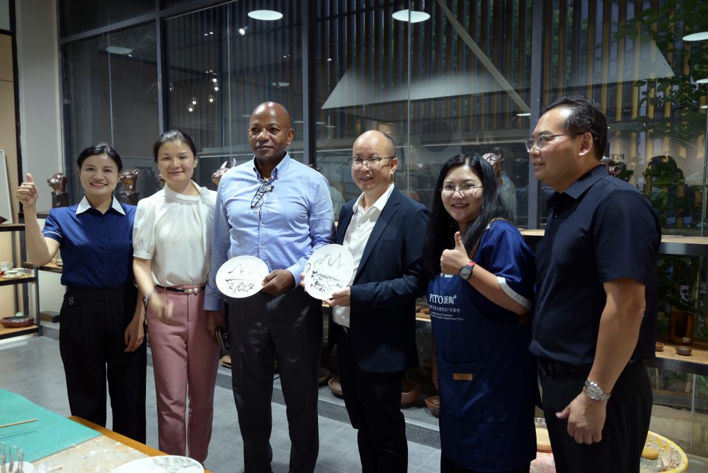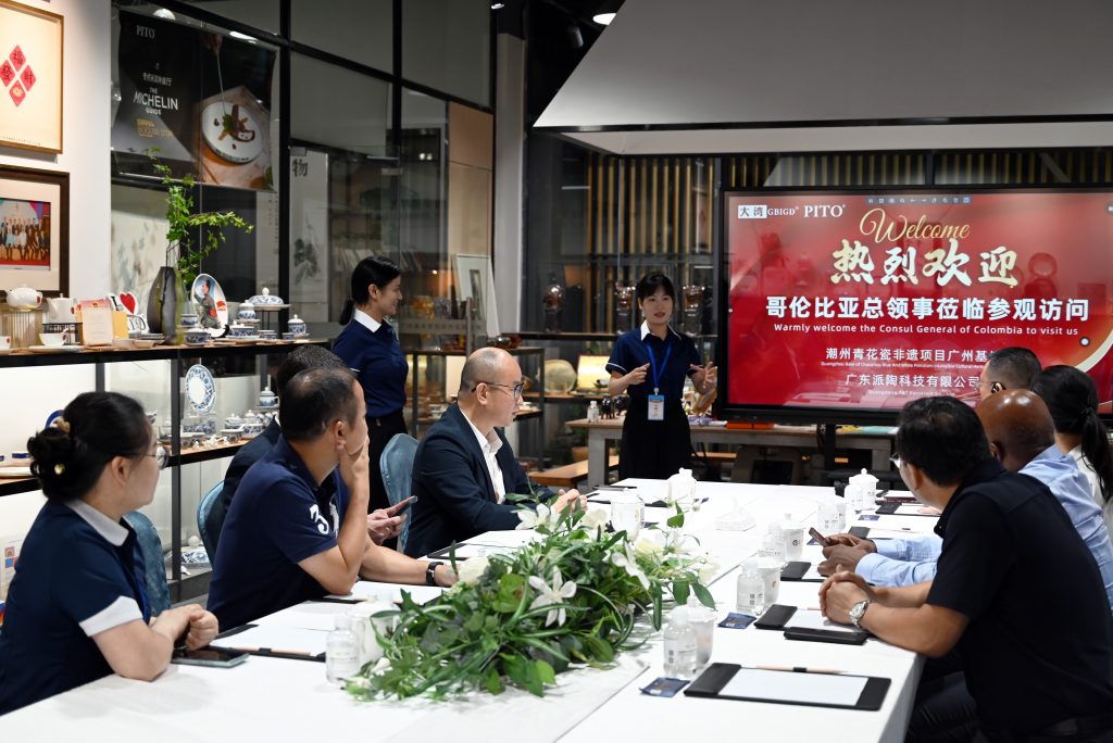 On August 26, 2024, the Colombian Consul General in Guangzhou and his delegation visited the GBI·PITO Nice Tableware Delicious Food Creative Cultural Experience Center. This visit marks an important step for China and Colombia in cultural exchanges and trade cooperation. Accompanied by Mr. Xu Hongsheng, Chairman of Guangdong PITO, Consul General Makanaky visited PITO’s workshop and exhibition hall in depth, experienced the production process of blue and white ceramic prints and hand-pulled embryo technology, also felt the profound heritage of traditional Chinese ceramic culture.