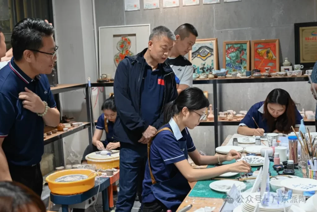 The delegation first visited the Guangzhou base of Chaozhou intangible cultural heritage blue and white porcelain, where they personally experienced the charm of this traditional craft. As an important representative of Chinese ceramic culture, blue and white porcelain carries a wealth of historical and artistic value, and the members of the delegation showed a strong interest in its unique craftsmanship and design.