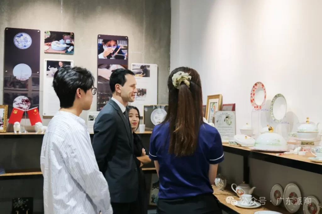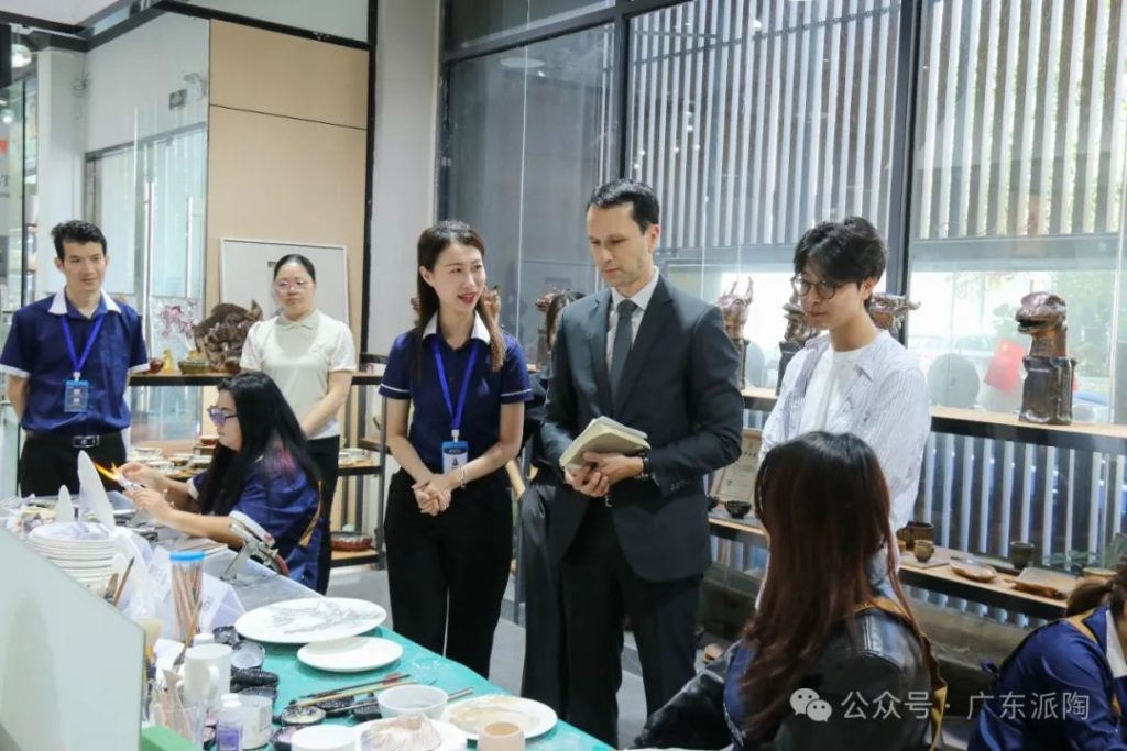 As the French representative for education and cultural affairs, Consul Olivier Ngo has always been committed to fostering cooperation between France and China in the fields of higher education, science, and culture. During his visit to the PITO workshop, Mr. Ngo took a deep dive into PITO’s handcrafted techniques, including pottery making, hand-painted blue-and-white porcelain, and glass lamp-working. He expressed his admiration for PITO’s ceramic pieces, particularly the interest in Chaozhou’s intangible cultural heritage of blue-and-white porcelain. As a classic symbol of Chaozhou culture, this unique porcelain embodies the distinct charm of Eastern aesthetics and serves as a testament to the deep cultural exchange between China and France.
