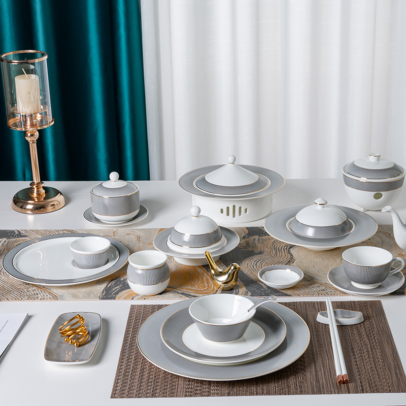 Indulge your guests in the epitome of luxury dining with our exquisite bone china dinnerware adorned with intricate decals,