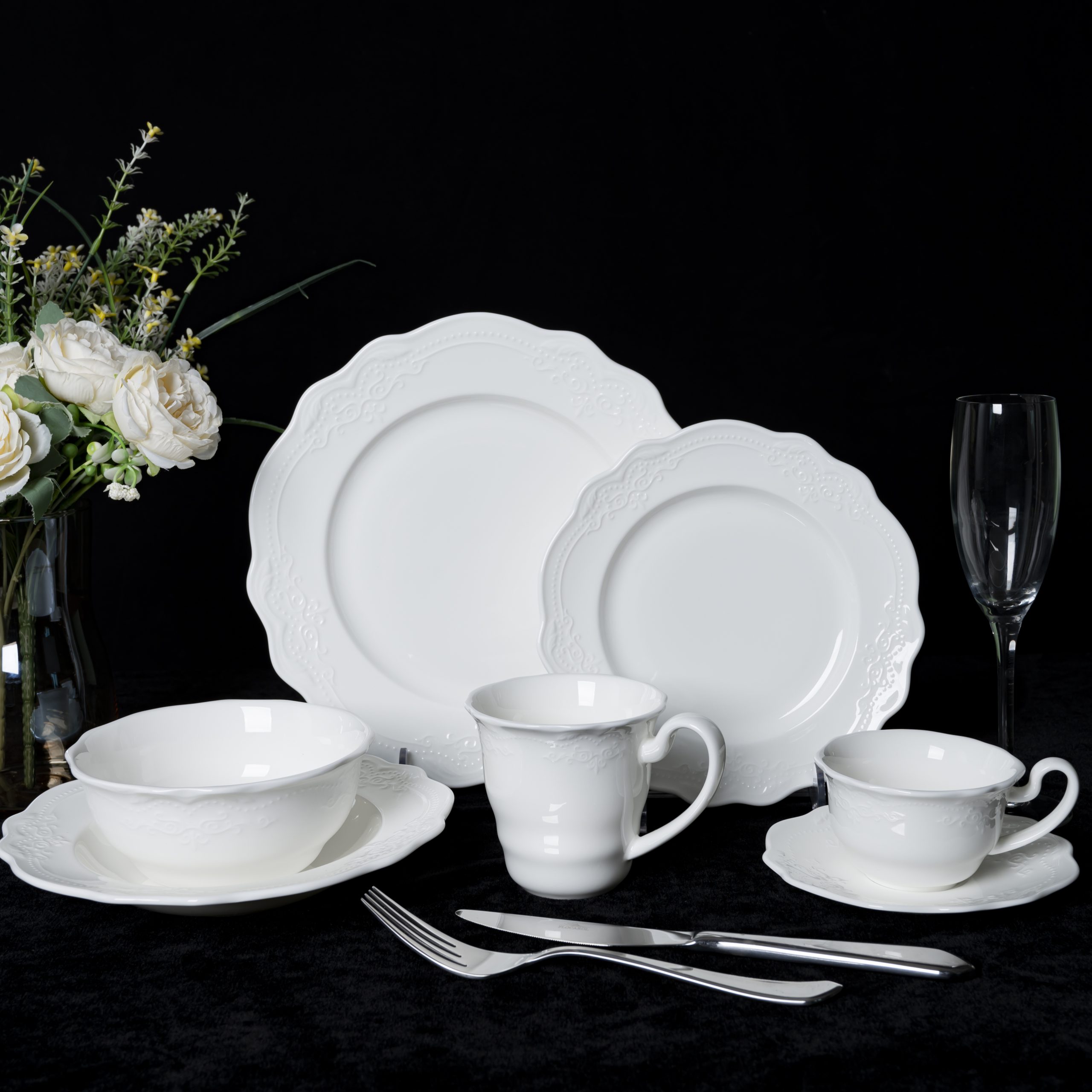 Perfect for family dinners, dinner parties, weddings, and other special events. This porcelain dining set is ideal for creating a cohesive and elegant dining experience that will impress your guests and make every meal special.