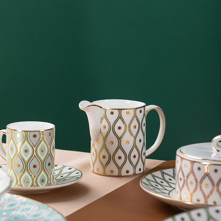High-quality materials – The set is crafted from high-quality bone china, which is known for its strength and chip resistance. The glossy glaze finish adds a lustrous shine to the set and makes it easy to clean.