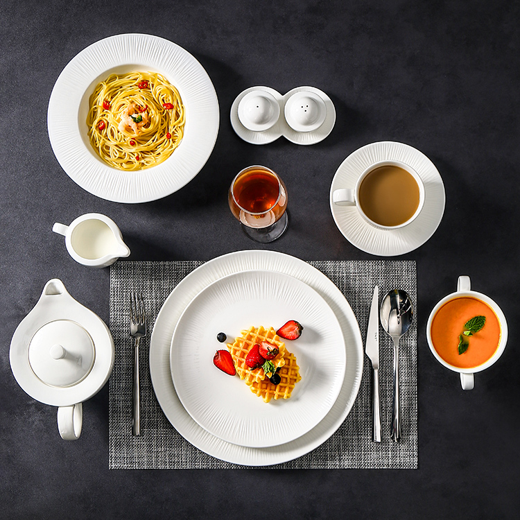 Perfect for family dinners, dinner parties, weddings, and other special events. This porcelain dining set is ideal for creating a cohesive and elegant dining experience that will impress your guests and make every meal special.