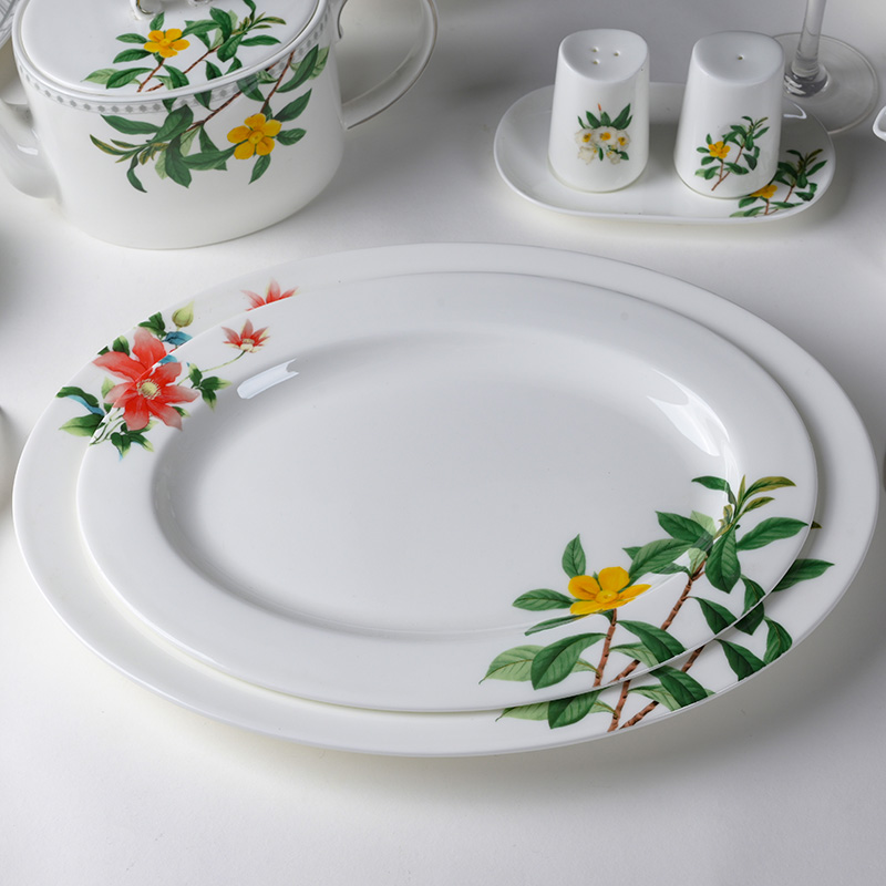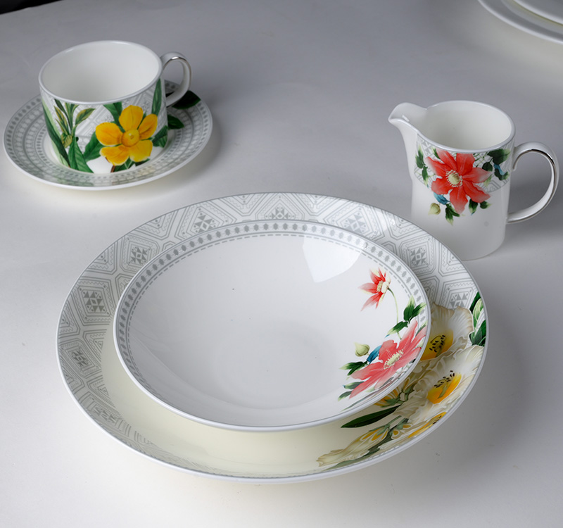 Indulge your guests in the epitome of luxury dining with our exquisite bone china dinnerware adorned with intricate decals,