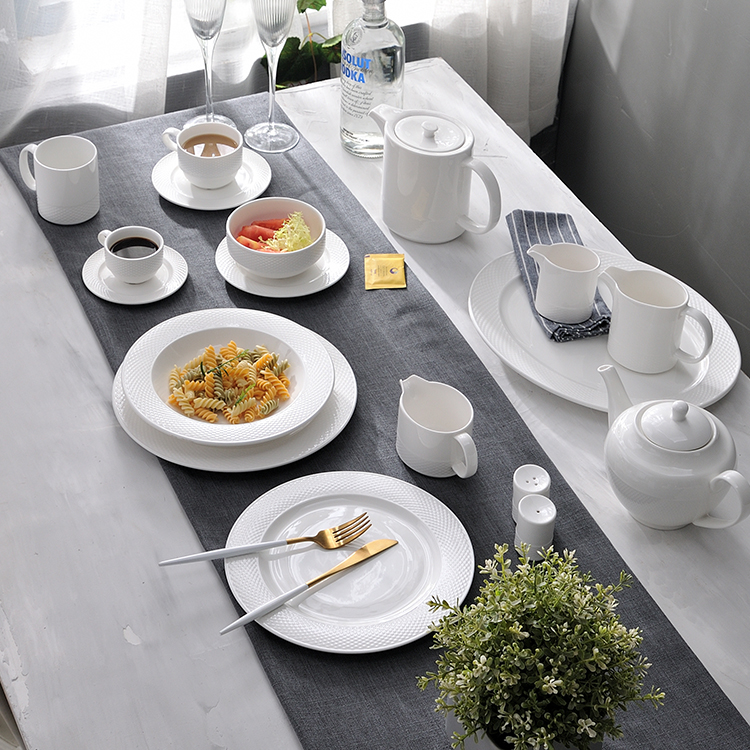 Perfect for family dinners, dinner parties, weddings, and other special events. This porcelain dining set is ideal for creating a cohesive and elegant dining experience that will impress your guests and make every meal special.