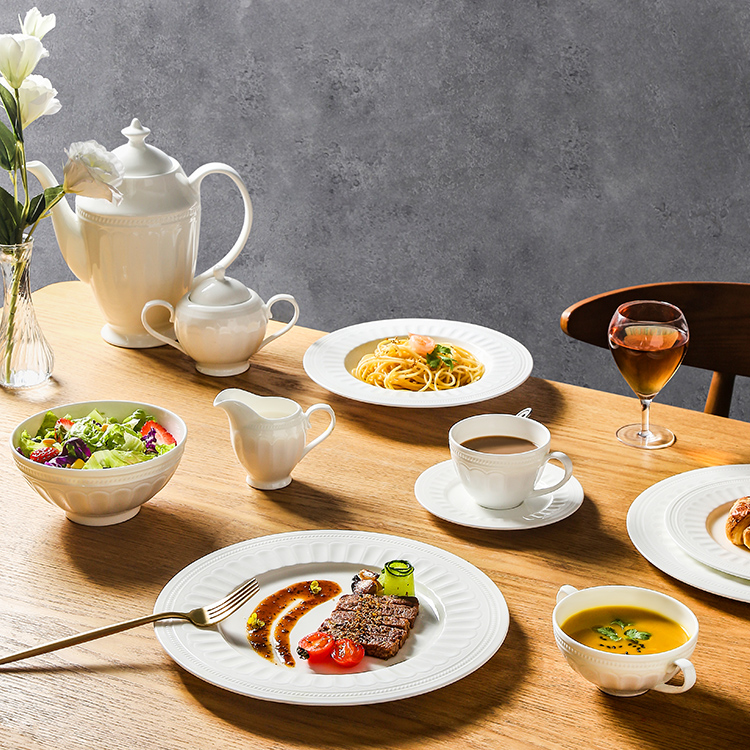 Perfect for family dinners, dinner parties, weddings, and other special events. This porcelain dining set is ideal for creating a cohesive and elegant dining experience that will impress your guests and make every meal special.