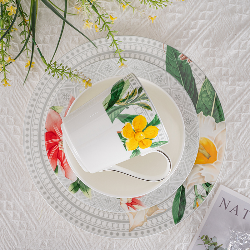 Indulge your guests in the epitome of luxury dining with our exquisite bone china dinnerware adorned with intricate decals,