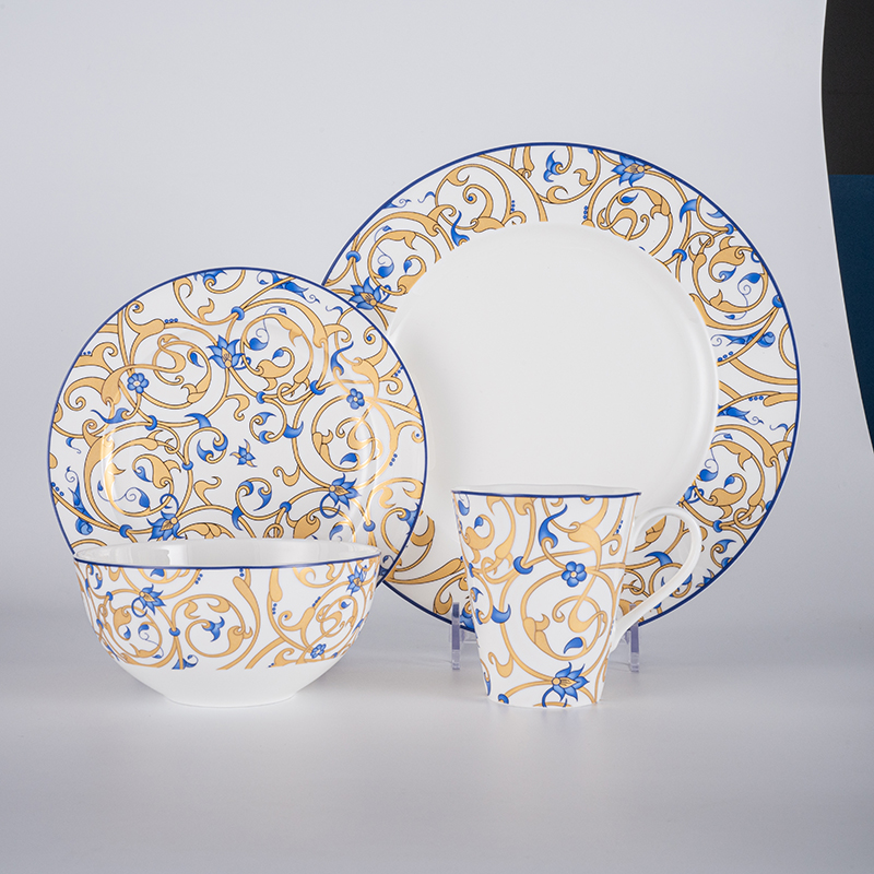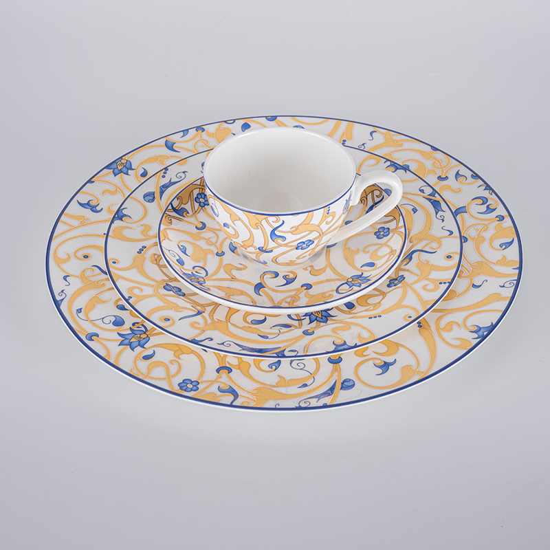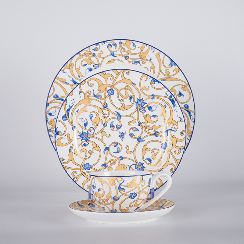 Indulge your guests in the epitome of luxury dining with our exquisite bone china dinnerware adorned with intricate decals,
