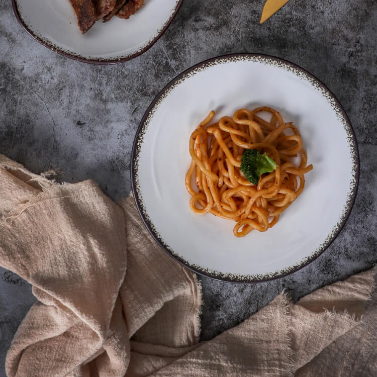 Hotel-glazed porcelain plates are designed to withstand the rigors of frequent use in a commercial setting, and they are often chip-resistant, scratch-resistant, and dishwasher-safe.