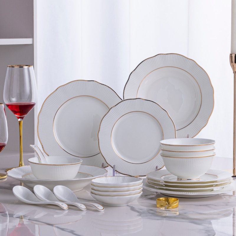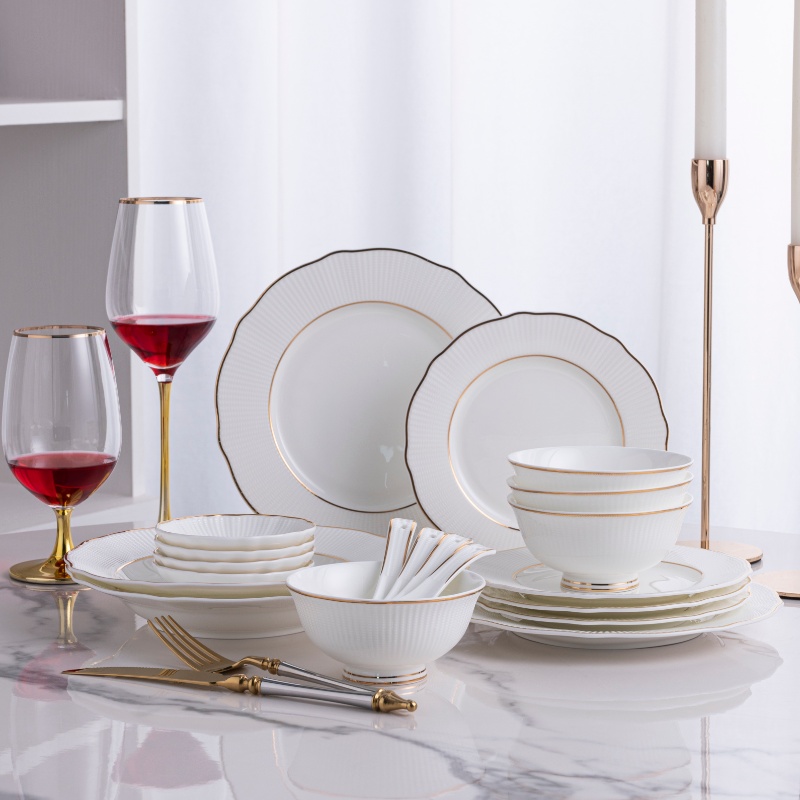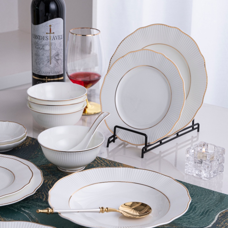 Perfect for family dinners, dinner parties, weddings, and other special events. This porcelain dining set is ideal for creating a cohesive and elegant dining experience that will impress your guests and make every meal special.