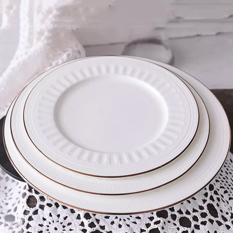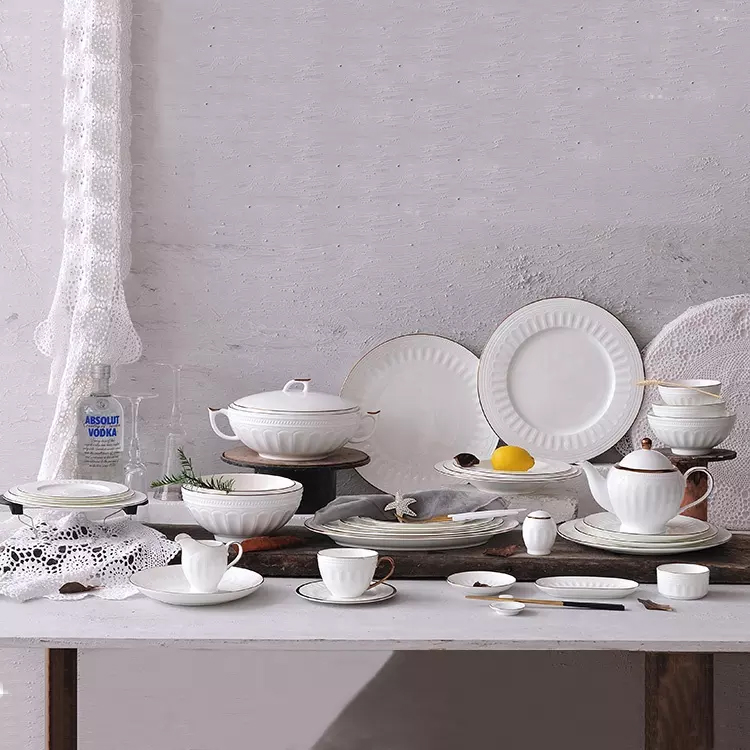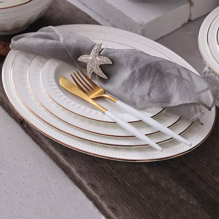 Luxurious White Gold-rimmed Ceramic Dinnerware
