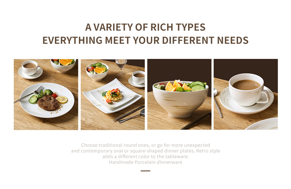 Perfect for family dinners, dinner parties, weddings, and other special events. This porcelain dining set is ideal for creating a cohesive and elegant dining experience that will impress your guests and make every meal special.