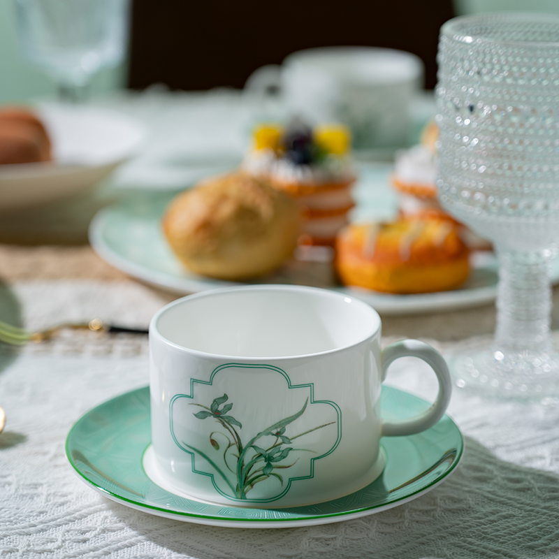 Indulge your guests in the epitome of luxury dining with our exquisite bone china dinnerware adorned with intricate decals,