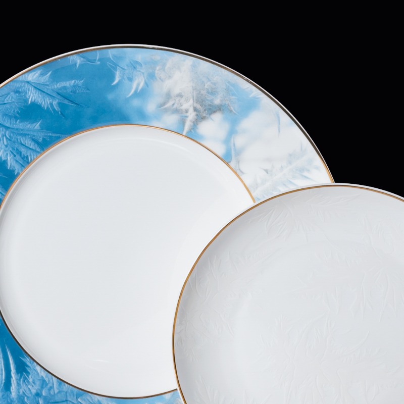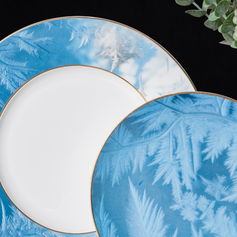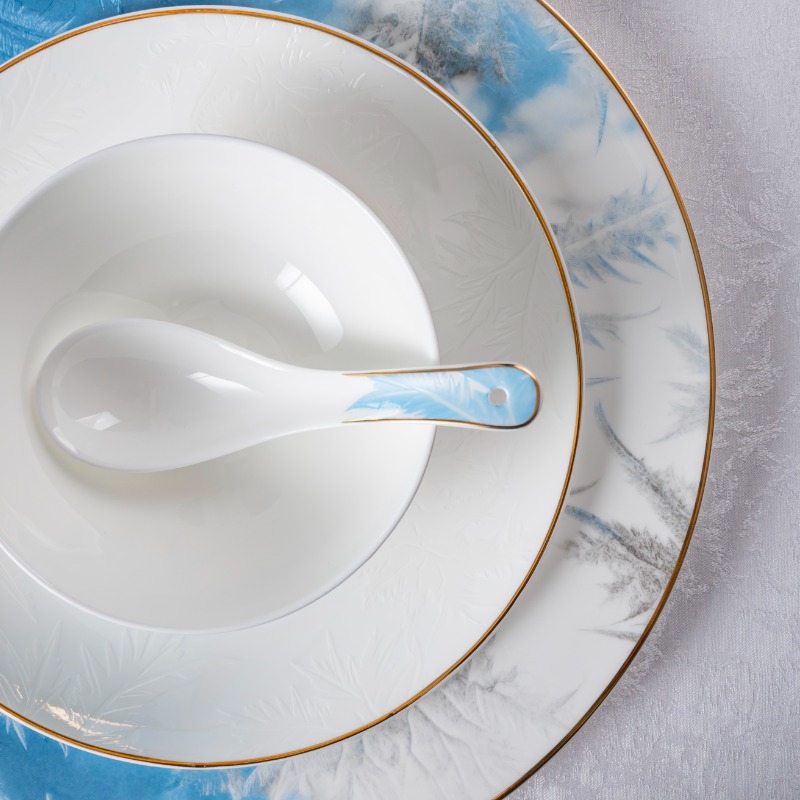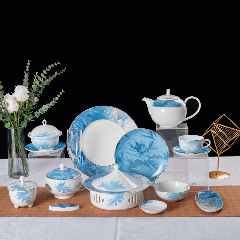 Indulge your guests in the epitome of luxury dining with our exquisite bone china dinnerware adorned with intricate decals,