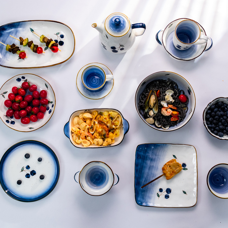Tableware Set Blue Color Ceramics Dinnerware