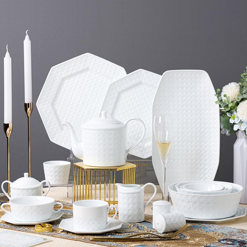 For added convenience, all components of the White Porcelain Dinner Sets are dishwasher and microwave-safe, simplifying the cleaning process and ensuring that the dinnerware can be quickly and safely reheated if necessary.
